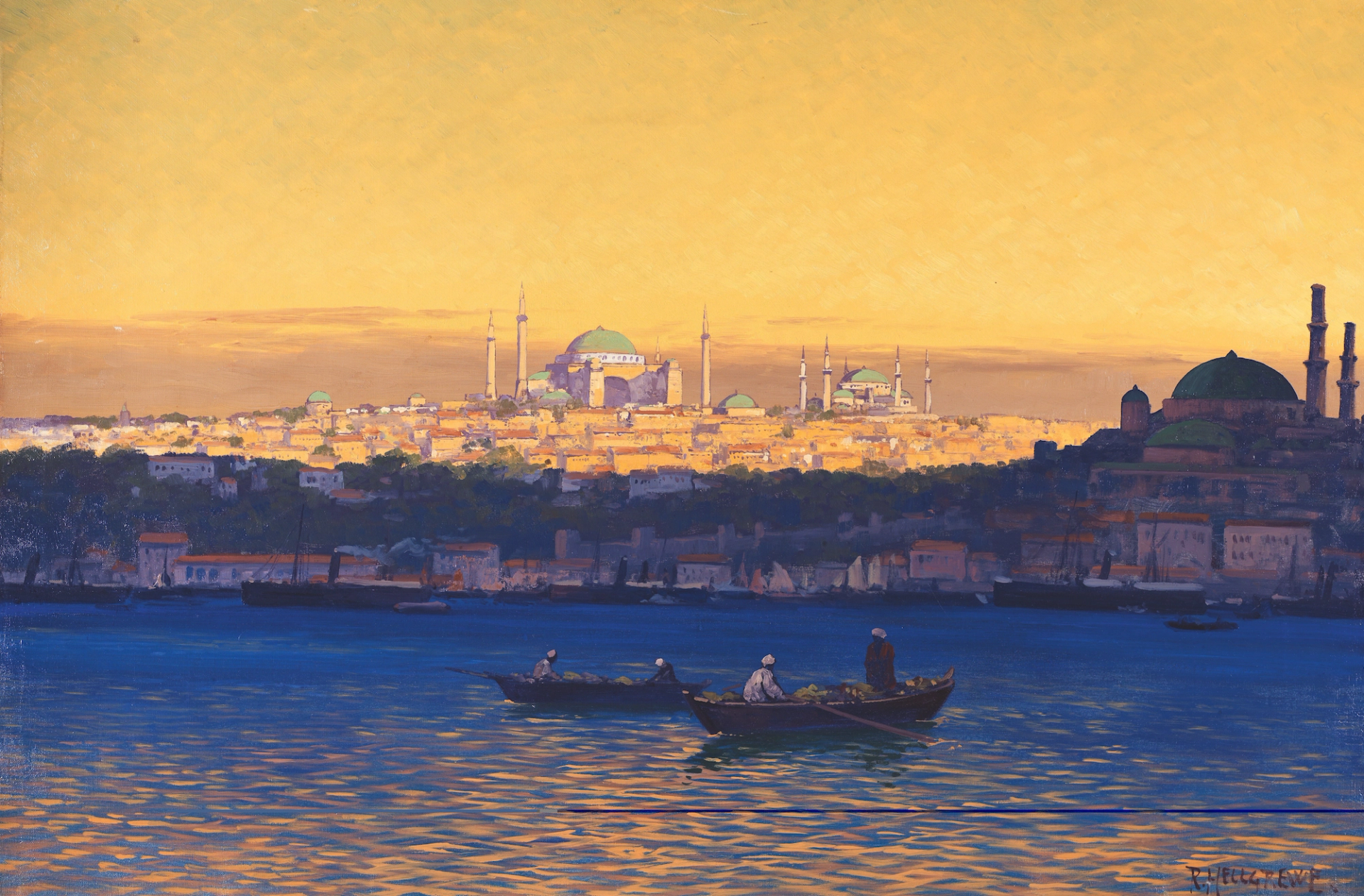 Rudolf Hellgrewe’ün “Gün Batımında Haliç” (1900) tablosu da Meşher’de 26 Mayıs’a kadar devam eden Göz Alabildiğine İstanbul sergisinde görülebilir.