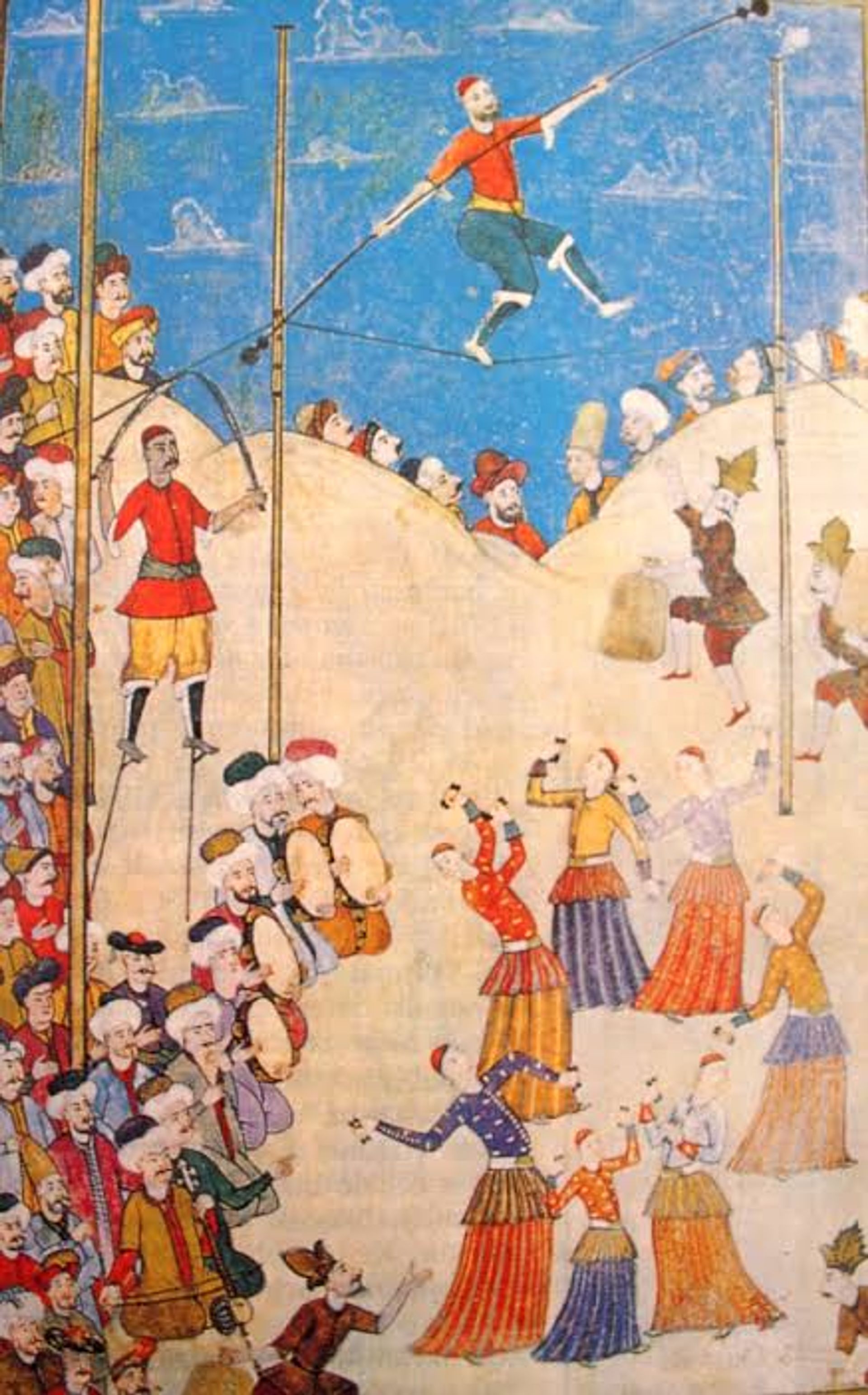 Sazendelerin, Çengilerin ve Cambazların Gösterisi, Nakkaş Levni, 18.yüzyıl erken dönem, guaja yakın bir teknik