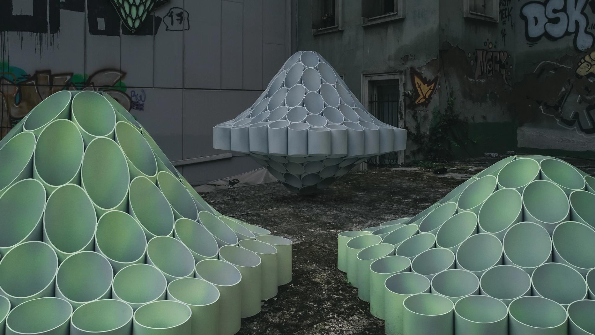 MAA, bir ses ve görünürlük vermek istediği çeşmede yüzlerce atık su borusunu bir araya getiriyor, ışık detayı için de fosfor kullanıyor.