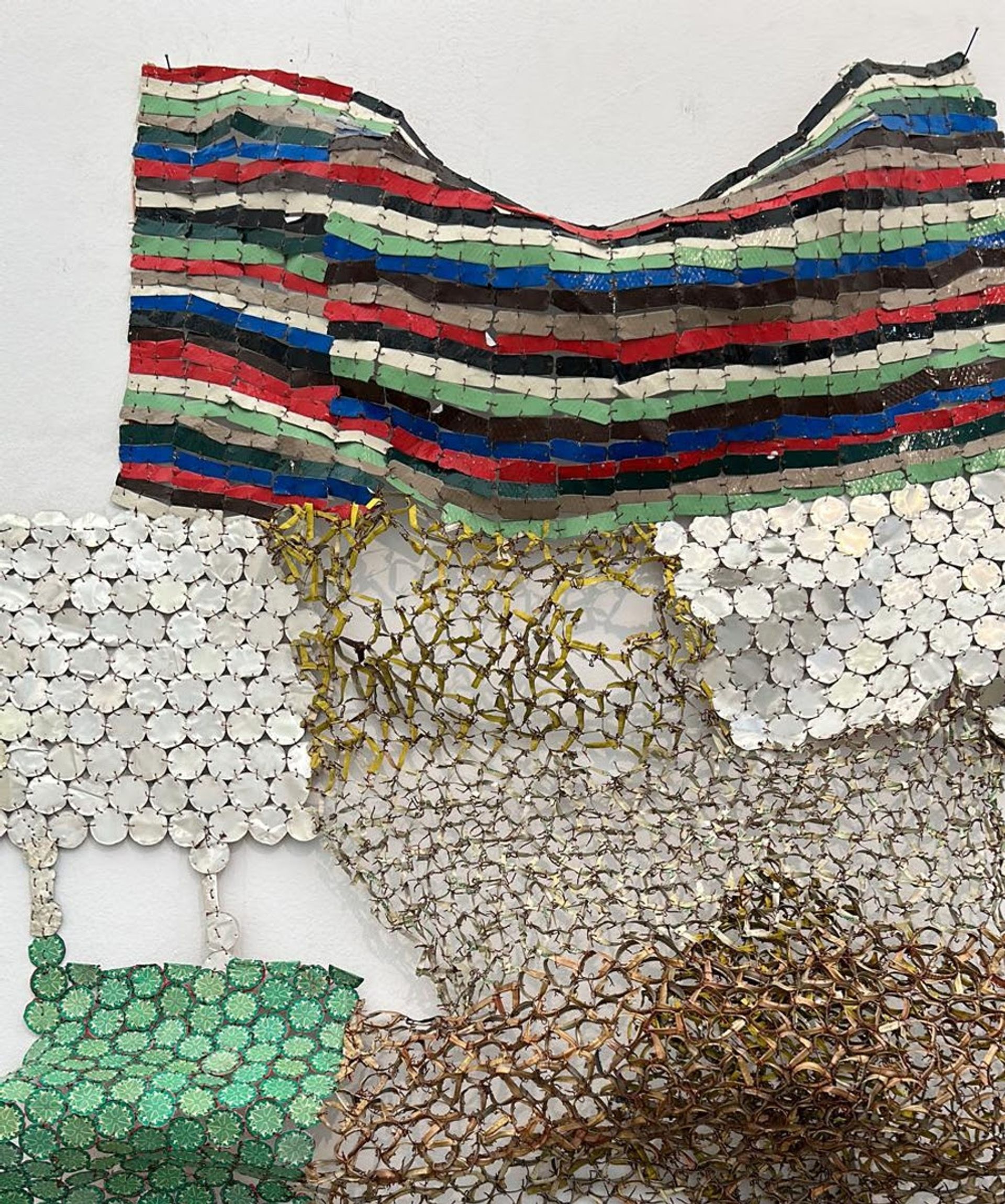 El Anatsui'nin "İsimsiz I" adlı çalışması 2023 yılında Goodman Galerisi'nde 1.9 milyon dolara satıldı. Şişe kapaklarından oluşturulan eser, sanatçının Tate Turbine Hall'deki ilgi çekici eserlerini anımsatıyor.