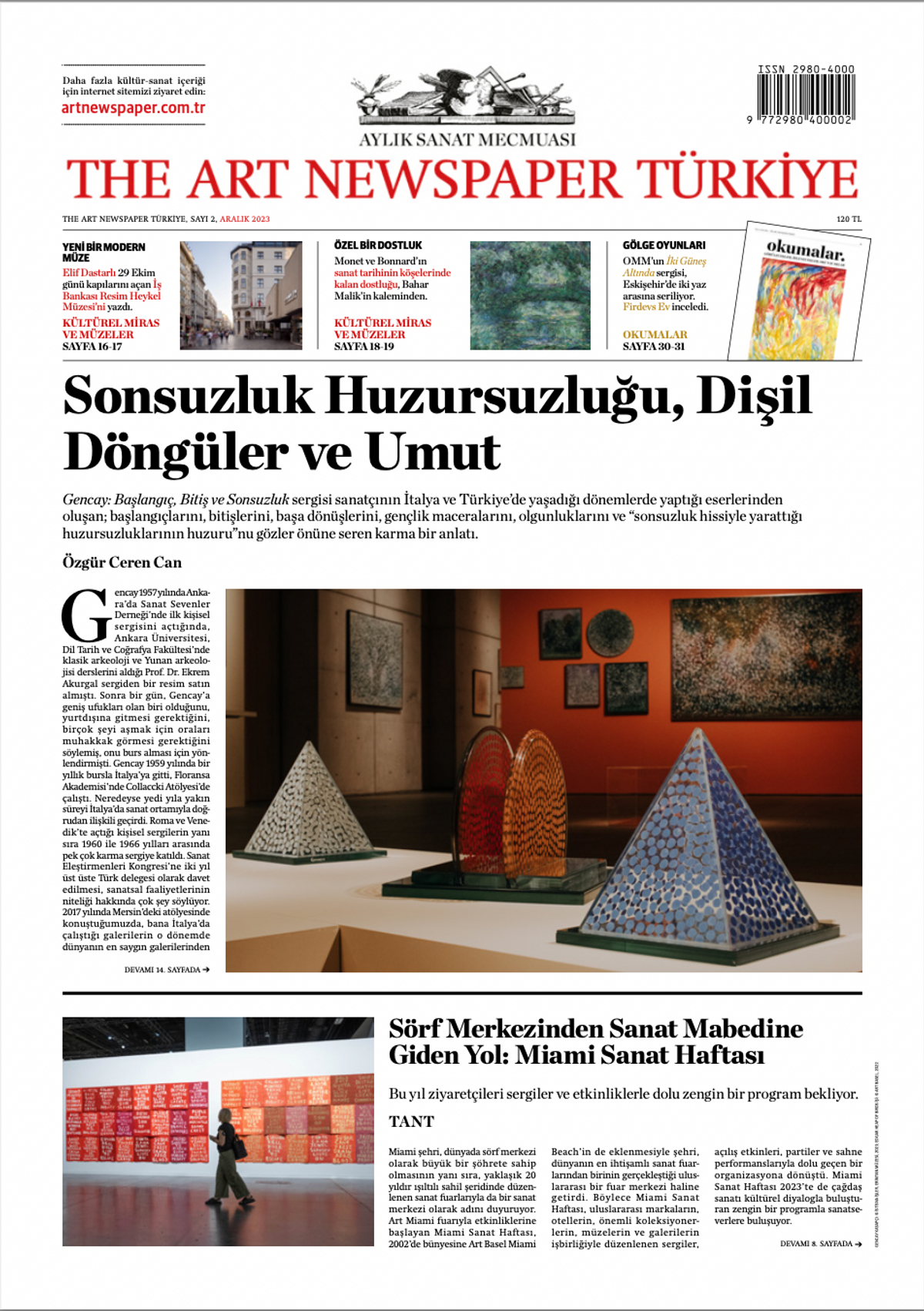 Kapaktaki yazısında Özgür Ceren Can, Gencay Kasapçı’nın kültürel mirasımızdaki yerini ve yarın üzerindeki etkisini irdeliyor. Bir diğer kapak haberi Miami Sanat Haftası’ndaki farklı fuarlar ve etkinlikler üzerine kapsamlı bir rehber.