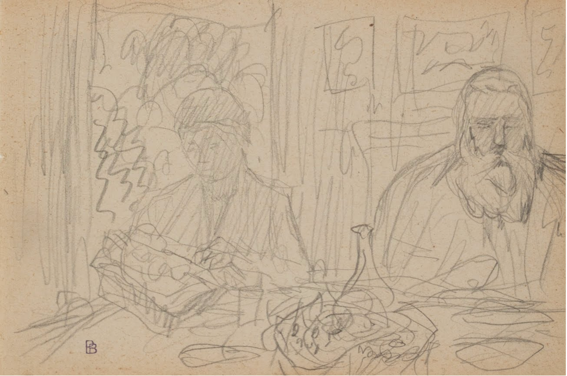 Bonnard’ın “Claude Monet ve Marthe Bonnard Giverny’deki Yemek Odasında” (1920) isimli çizimi, ikilinin arkadaşlığının bilinen tek sanatsal kanıtı.
