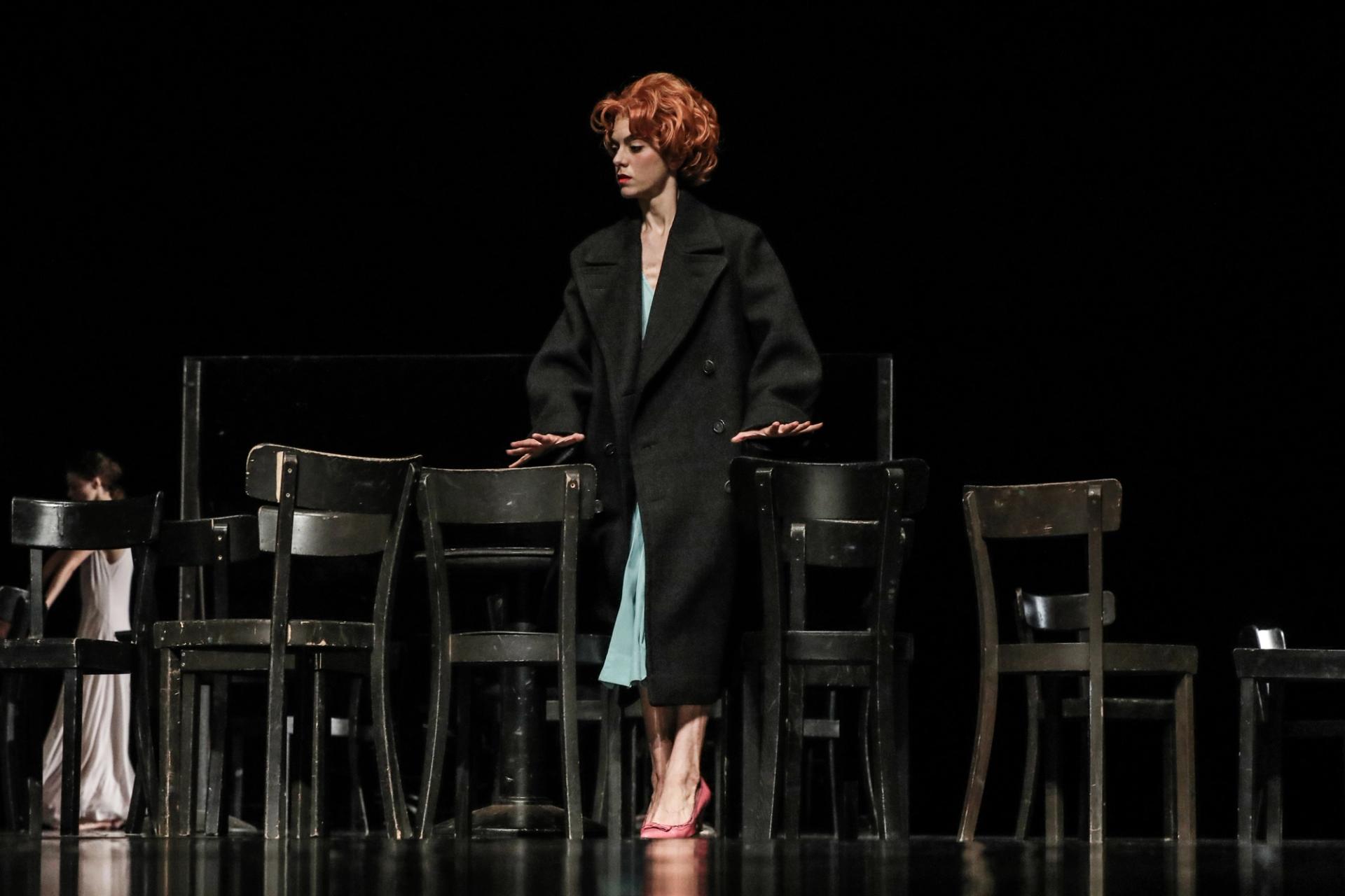 Kızıl saçlı kadın, oyunun can simidi gibi, kafeyi Ernaux’nun kafesindeki canlılığa yaklaştırma ihtimali olan tek unsur. Başlarda sahneye panikle girip hemen çıkmasıyla dışarıdan birini andırsa da ikinci bölümdeki varlığı, sırtını seyirciye dönüp kalçasını kederli bir şekilde kıvırtışı, flört ettiği erkeklerin hep bir adım gerisinde kalışı onu uyurgezerlerden ayrı bir yerde konumlandırıyor. Kızıl saçları, mavi elbisesi ve pembe ayakkabılarından da görülebileceği gibi diğerlerinden daha renkli bir ruh o. Belki de bu yüzden onun yalnızlığı herkesinkinden daha hazin.