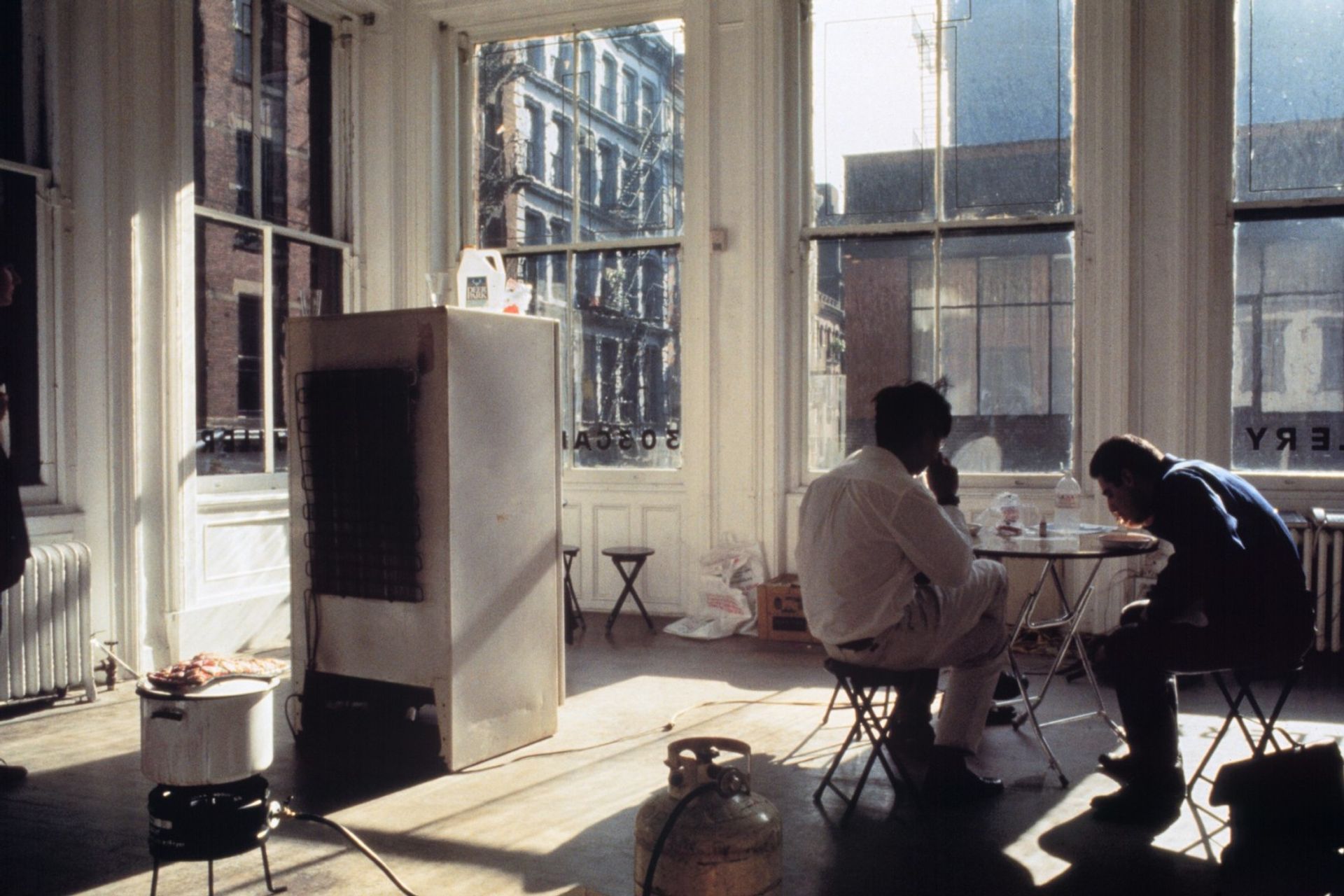 Rirkrit Tiravanija, “Untitled (Free)” (1992), 303 Galeri, enstalasyon görüntüsü. Tiravanjia hazırladığı Tayland usulü sebzeli köriyi isteyen herkese ücretsiz servis ediyor.