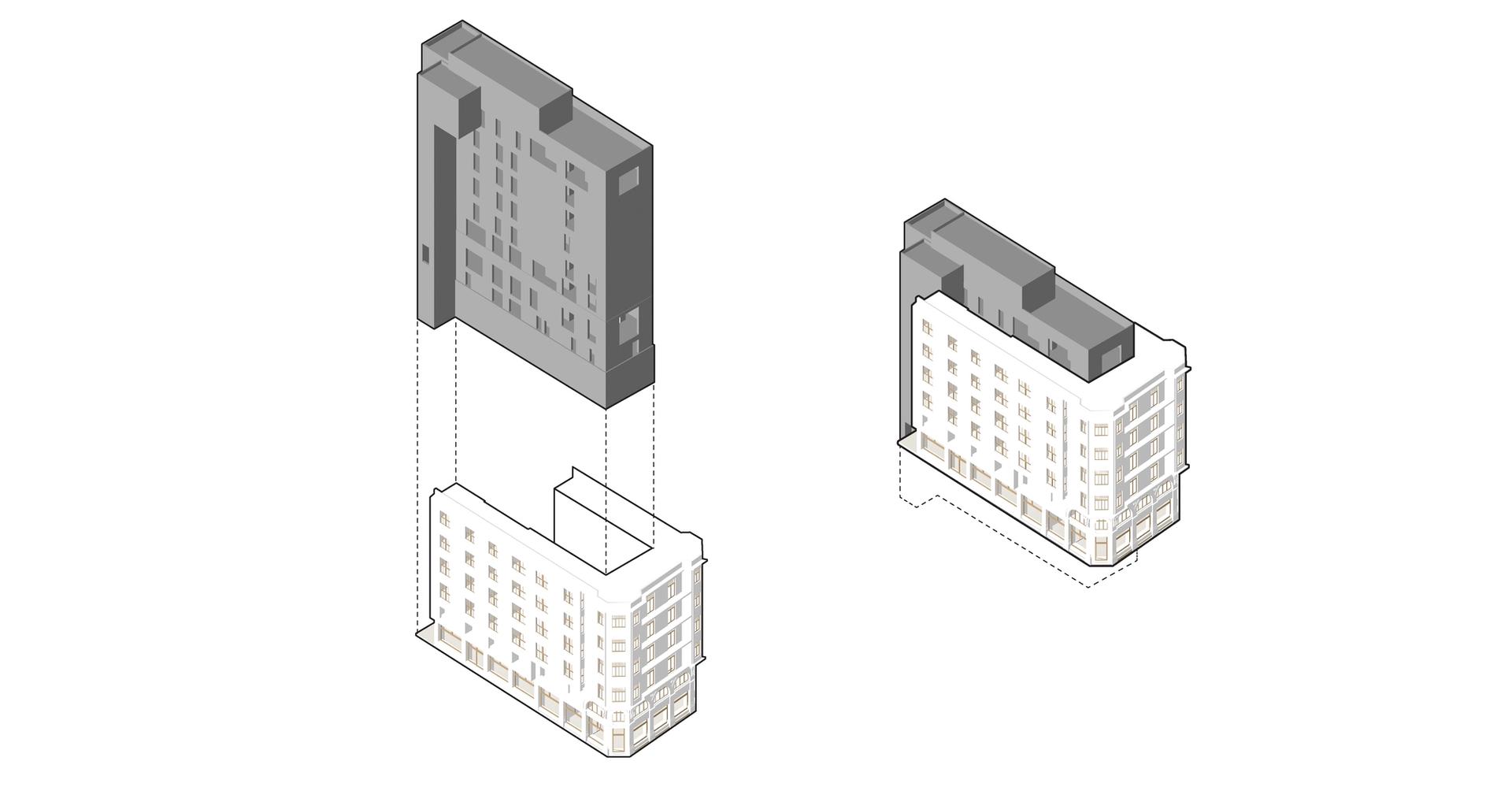 ERTUĞ UÇAR: İstiklal’de bir sürü neoklasik bina var, 19. yüzyılda yapılmış ve birçoğu yenilendi bunların ama farklı modeller uyarınca… Örneğin Casa Botter hiçbir yeri yıkılmadan ve fazla yeni bir tesisat eklenmeden olduğu gibi onarıldı. Buna aslında restorasyon ya da esaslı onarım da deniliyor. Böyle yapabilmenin önemli sebeplerinden biri, o binanın bizimki gibi çılgın bir işlevi barındırmayacak oluşuydu, o kadar büyük bir bina değil. Dolayısıyla çok dokunulmadan yapıldı. İkinci bir versiyon mesela İKSV binası, Deniz Palas. İKSV de esaslı bir onarımdan geçti ama orada yıkımlar da biraz oldu, binayı yeni işlevine dönüştürmek için. Mesela havalandırma boşluğunu biraz genişletip içine asansör yerleştirdiler, binanın arka tarafında bir yere yangın merdiveni koydular, bir de zemin katta normalde orada olmayan bir salon yarattılar. Sonuçta bazı noktasal müdahaleler yapmış oldular.