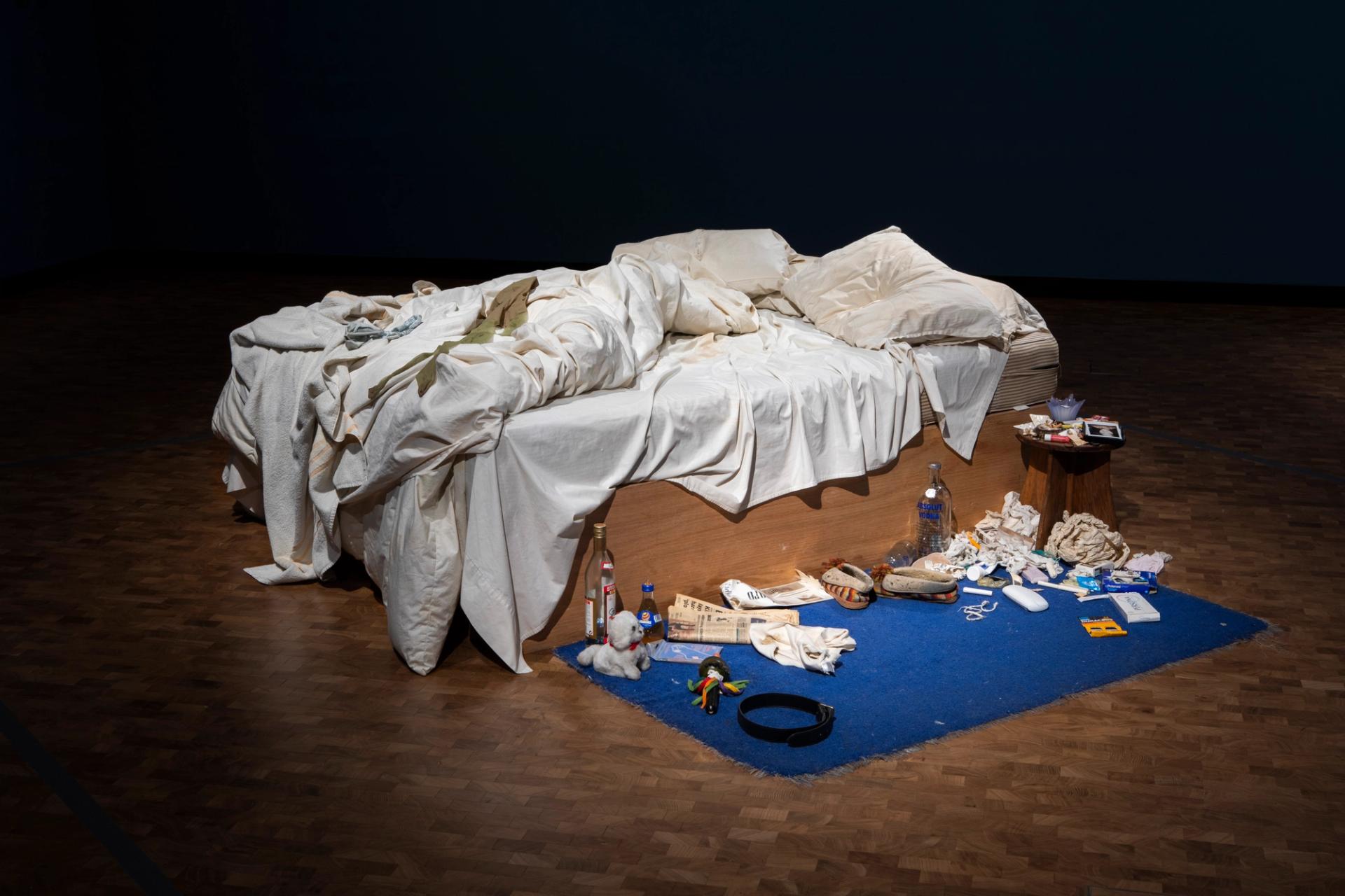 “My Bed” (Yatağım, 1998). Emin’in sansasyon yaratan “My Bed” gibi işlerinde mahrem bir nitelik bulunduğu ortada ve bu nitelik, sanatçıyı ortaya koyduğu yapıtla ayrılmaz bir bütün haline getiriyor.