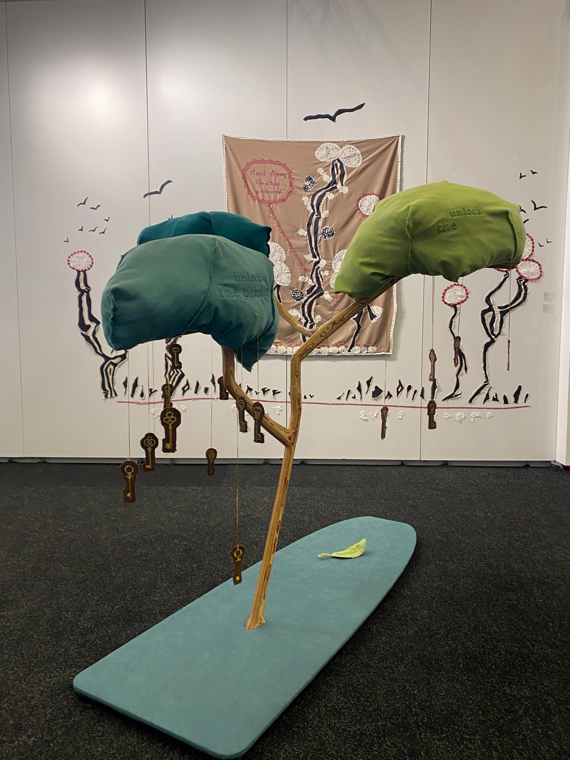 Pi Artworks fuarın en renkli stantlarından birine sahip. Buna katkı sağlayan sanatçılardan biri Nancy Atakan ve onun “Dilek Ağacı” eseri. İlk bakışta akla, dilekler eşliğinde ağaçlara bağlanan bez parçalarını getiren eser, ilhamını da tam olarak bu ritüelden alıyor. Bez parçaları yerine anahtarlar işleyen sanatçı, sayısız dilek ve geçmiş barındıran bilge yaşlı ağaçların diline kulak vermenin, bizi mevcut çevresel felaketten kısmen de olsa kurtarabileceğine inanıyor.