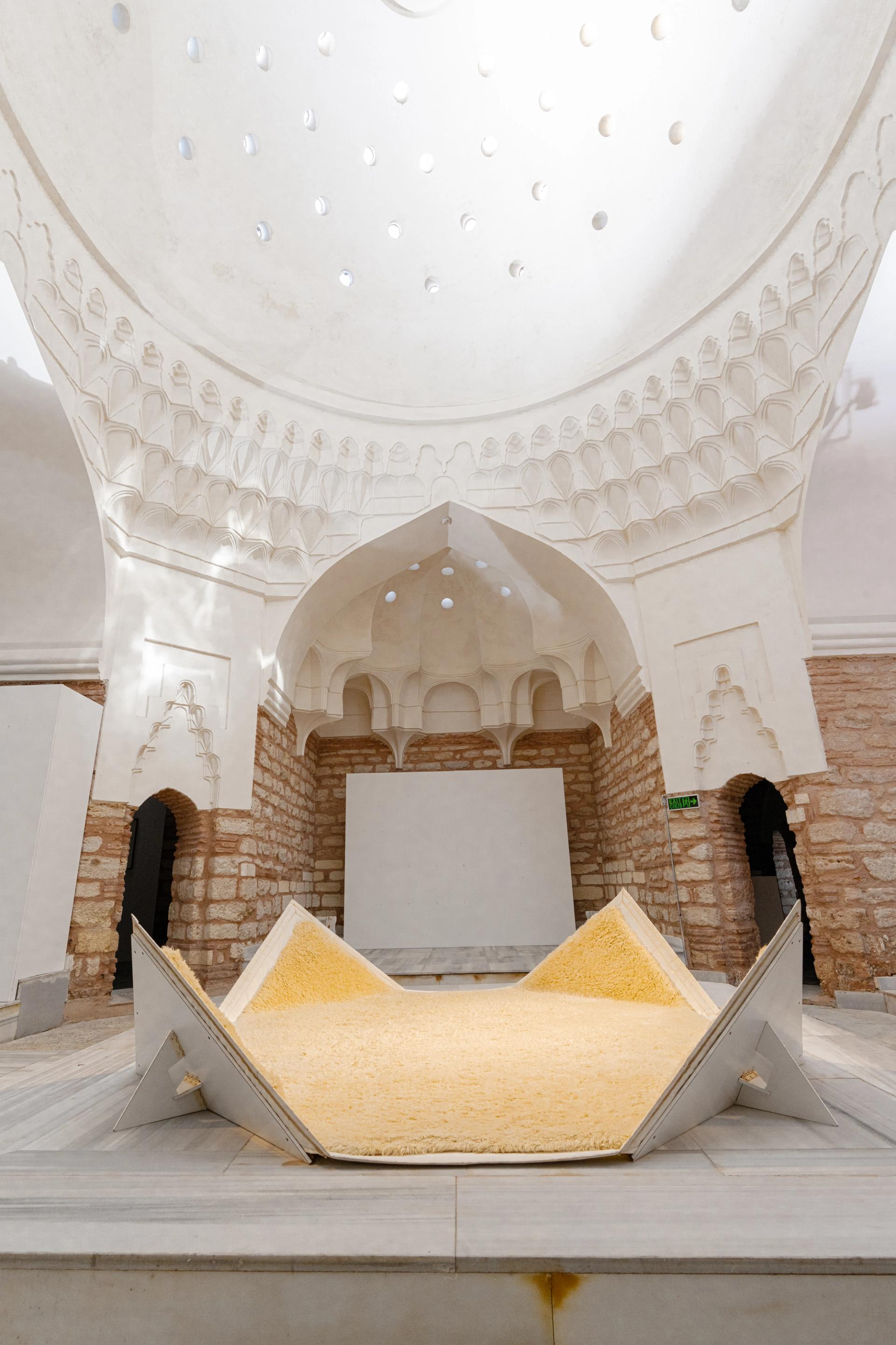 Tapis-Siège eserlerinin, Osmanlı hamamının ve Ortadoğu kültürünün sergide vurgulanan metaforik bağlantısı hakkındaki düşüncelerinizi bizimle paylaşır mısınız. Size ne hissettirdi?