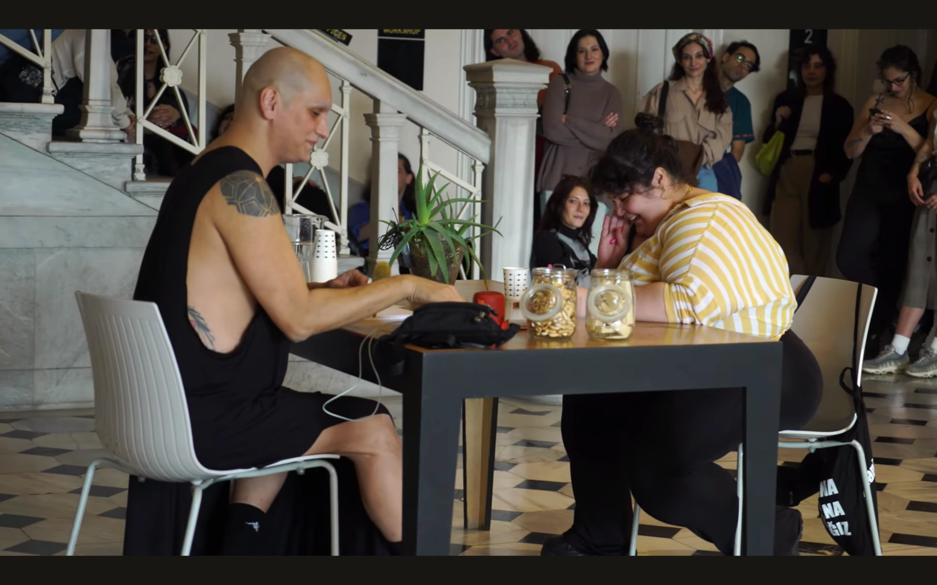 Ah Bu Şarkıların Gözü Kör Olsun, interaktif performans, SALT Galata, 19 Kasım 2022. Basit bir yapıya sahip bu oyunbaz performans, masaya davet edilen konukların sohbetiyle şekillenir.
