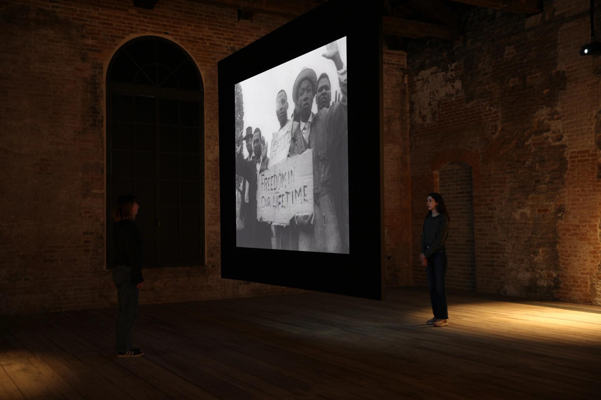 CriticalPast’ın ilginç tarafı, içindeki hemen her film bu bahsettiğim propagandist tavırla çekilmiş. O gördüğünüz video içinde 1911’den kalan Meksika sınırındaki savaş esirlerinin görüntülerinden tutun, Apartheid sırasındaki görüntülere, Berlin’den Macaristan’a her yerden görüntü var. Başından beri aklımda mekânda kurguladığım olayın sözünü taşıyacak bir film yapmak fikri vardı. Hatta bunun için ekranı çok önceden kurdum ama üstüne gelecek sözü en son noktaya kadar sakladım ve onu yapmak için de en doğru tavrın bu filmleri kullanmak olduğunu düşündüm. Burada yedi kıtadan –belki Antarktika hariç– savaş anları, diasporalar, göçler, gösteri yürüyüşleri vs. hepsinden birtakım parçalar var. Ben bunların nerelerden olduğunu biliyorum ama görenler o kadar kısa anlardan anlayamayacaktır hepsinin nerelerden olduğunu.