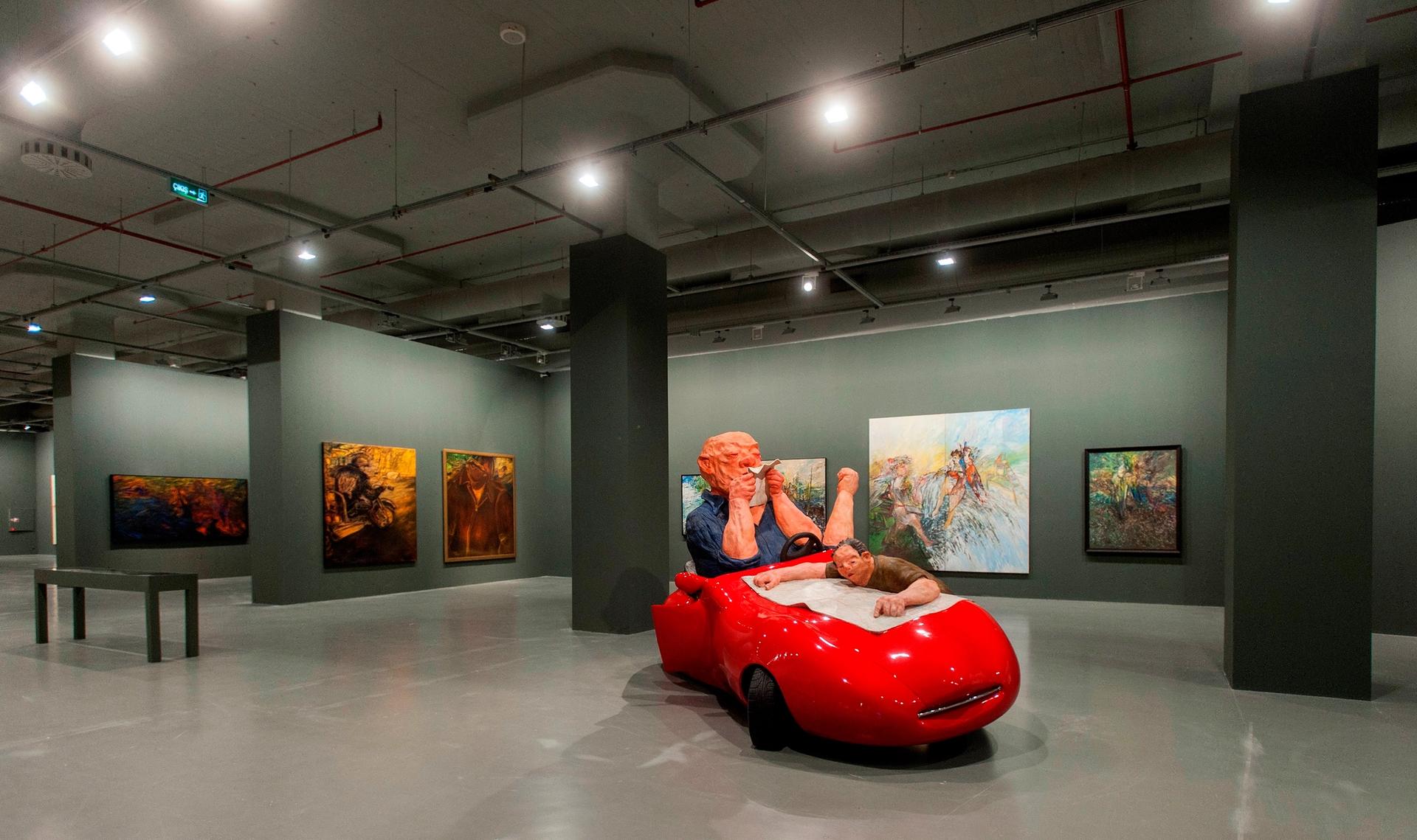İstanbul Modern’de 2015’de gerçekleşen Ressam ve Resim: Mehmet Güleryüz Retrospektifi sergisinden sergi görünümü. Sanatçı, sergi kataloğunda, “Doğanın ve insan yaşamının kurgulanışını, kabul edilenin ötesinde bambaşka açılardan görmek ve bunlar hakkında kendi düşüncesini var kılmak ister ressam,” der.