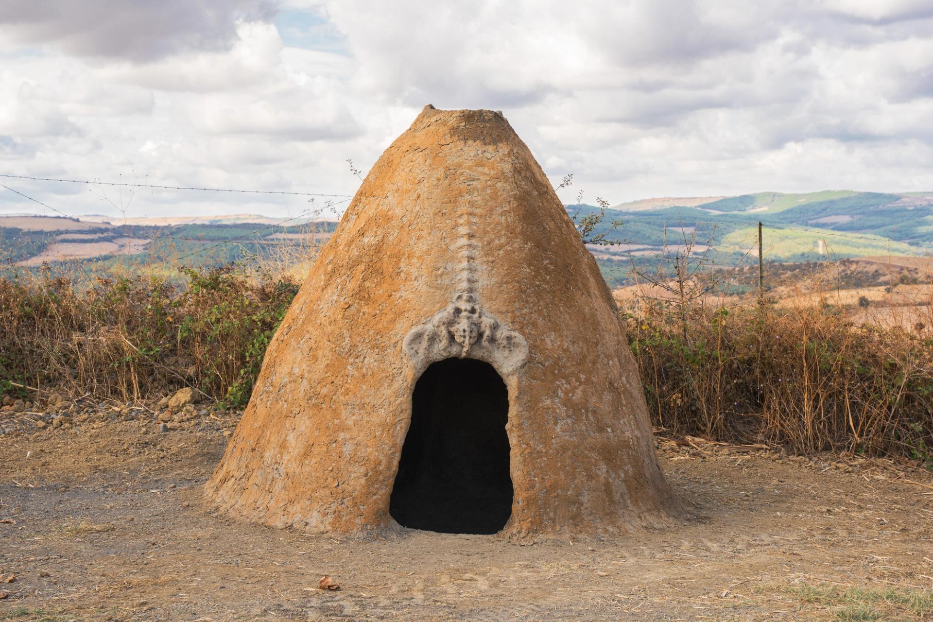 Dilan Bozer, "Ana Göbeği", 2024, toprak, kamış, salkım söğüt, 220x 220 x 250 cm