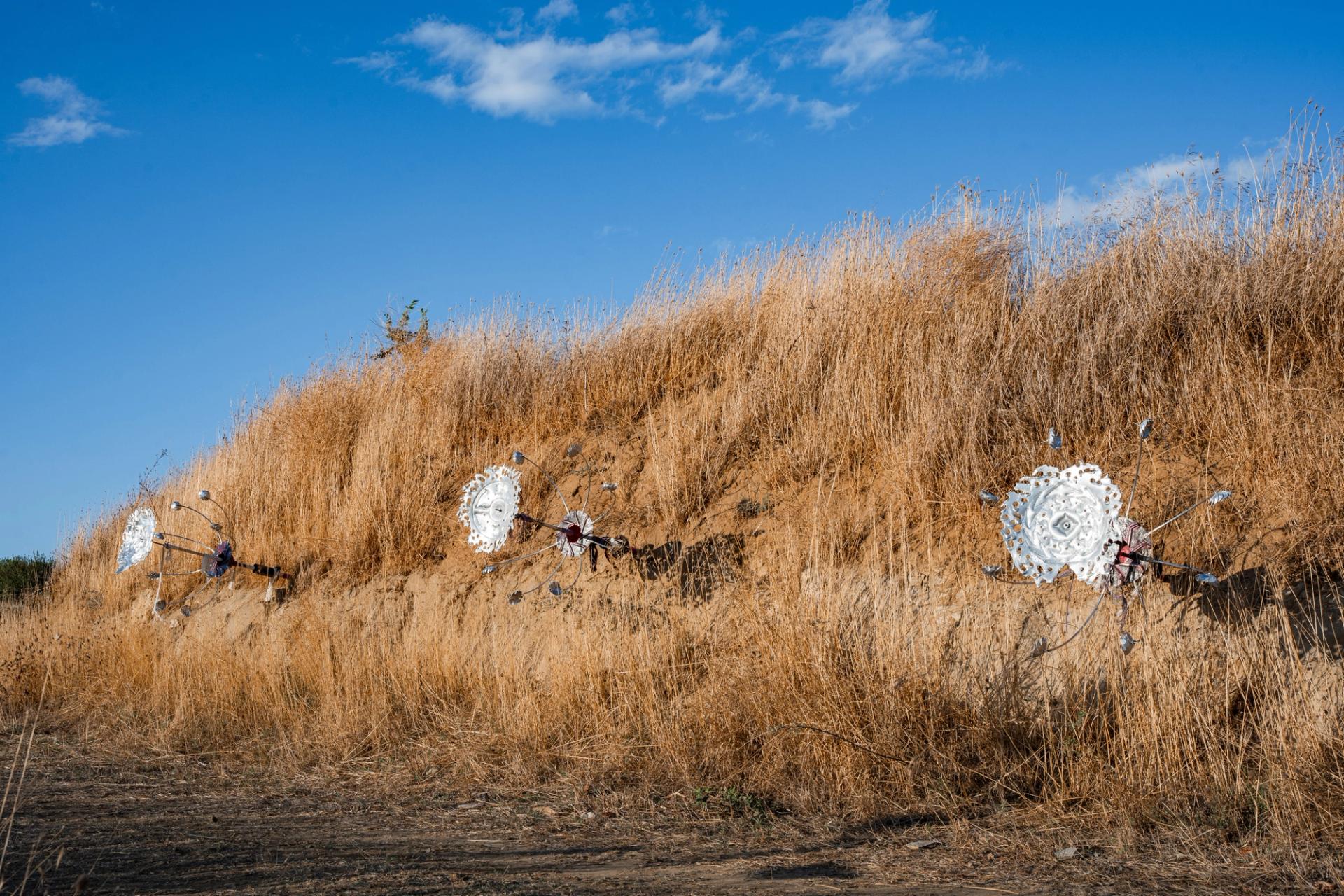 Yapıtlar insan olmayanla daha yakın bir bağ kurup manzaranın içine yerleşmeyi, kimi zaman ise alternatif platformları sunmanın rahatlığını hissettirdi. Dilan Bozer direkt olarak Tekirdağ’a ve hatta o yöreye ait yabani kil ve doğal malzemeleri kullanarak bir cevap verdi. Bölgenin önemli bir mirası olan tümülüslere referansla kendi hikayesini bütünleştirdi. Furkan Öztekin’in kendi doğup büyüdüğü bu toprakların manzarasına yerleştirdiği kolaj çizgilerle manzarayı düşünmeyi değil manzarayla birlikte düşünmeyi bir öneri olarak getirdi. Sam Nicholson rezidans süresince etrafta biten yabani bitkilerden ilhamla metal heykeller yaptı. Büşra Özdemir bitkilerin egemenliğini ilan eden, bağlardan topladığı bitkilerle ekolojik baskı yaparak her parsele bitkilerin bayraklarını yerleştirdi. Sergide insan olmayanı daha çok ele almış gibi gözükse de, arazide hala insanın varlığı kendini baskın şekilde ele veriyor.