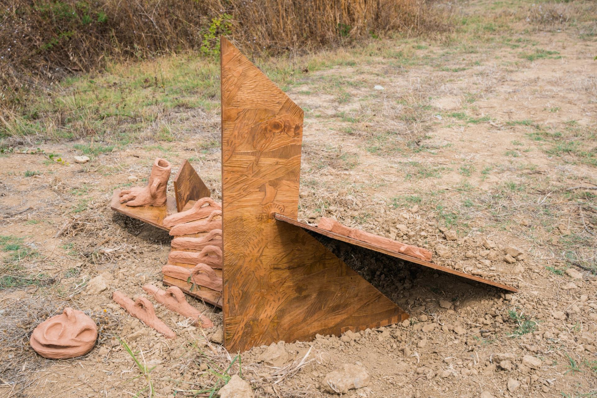 Valentina Bacci, "Kim yumurtaya sahip çıktı", 2024, kil ve ahşap yontu/değişen ölçüler