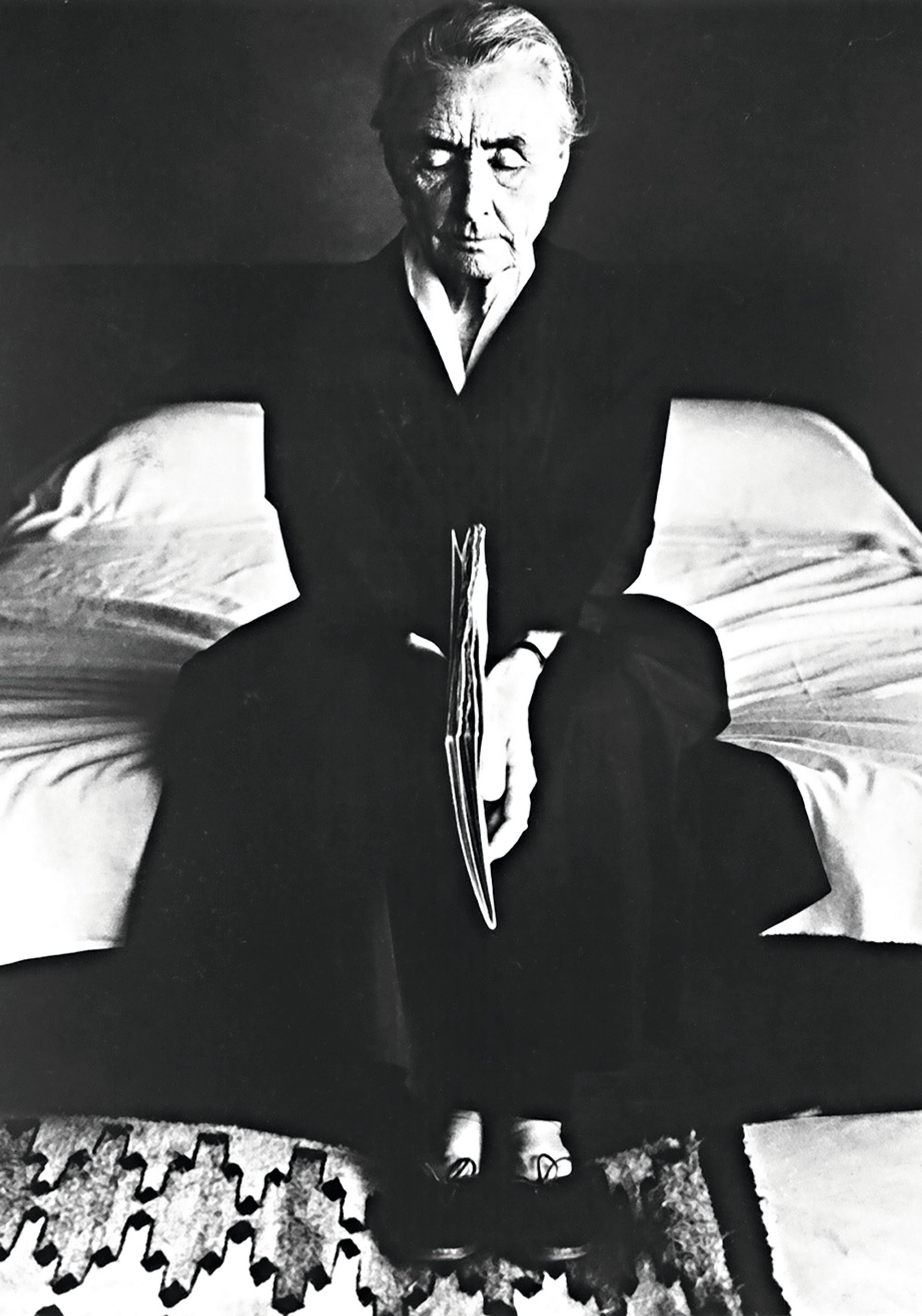 Georgia O’Keeffe’in gardırobu şık ve sadeydi. Türk tipi kumaş pantolonlar, Japon tarzı önden sarmalı kıyafetler ve rahibelerinkine benzer elbiseler giyerdi; neredeyse her zaman siyahlar içindeydi. Siyah pantolon takımları için New York’taki Kniže ve yere kadar uzanan pardösüleri için Hong Kong’daki K.C. Chang gibi özel terzilerle çalışırdı. Hatta kıyafetlerini kendi diker, bazen imzası haline gelen geniş kenarlı şapkalarla tamamladığı, uçuşan kurdelelerle süslenmiş siyah-beyaz elbiselerle görülürdü. O’Keeffe özgün giyinmeyi tercih etse de, illaki insanları şaşırtmak gibi bir derdi yoktu. Bu yüzden renkler ve detayları bir kenara bırakıp kıyafetin en önemli parçası olarak gördüğü siluete odaklandı.