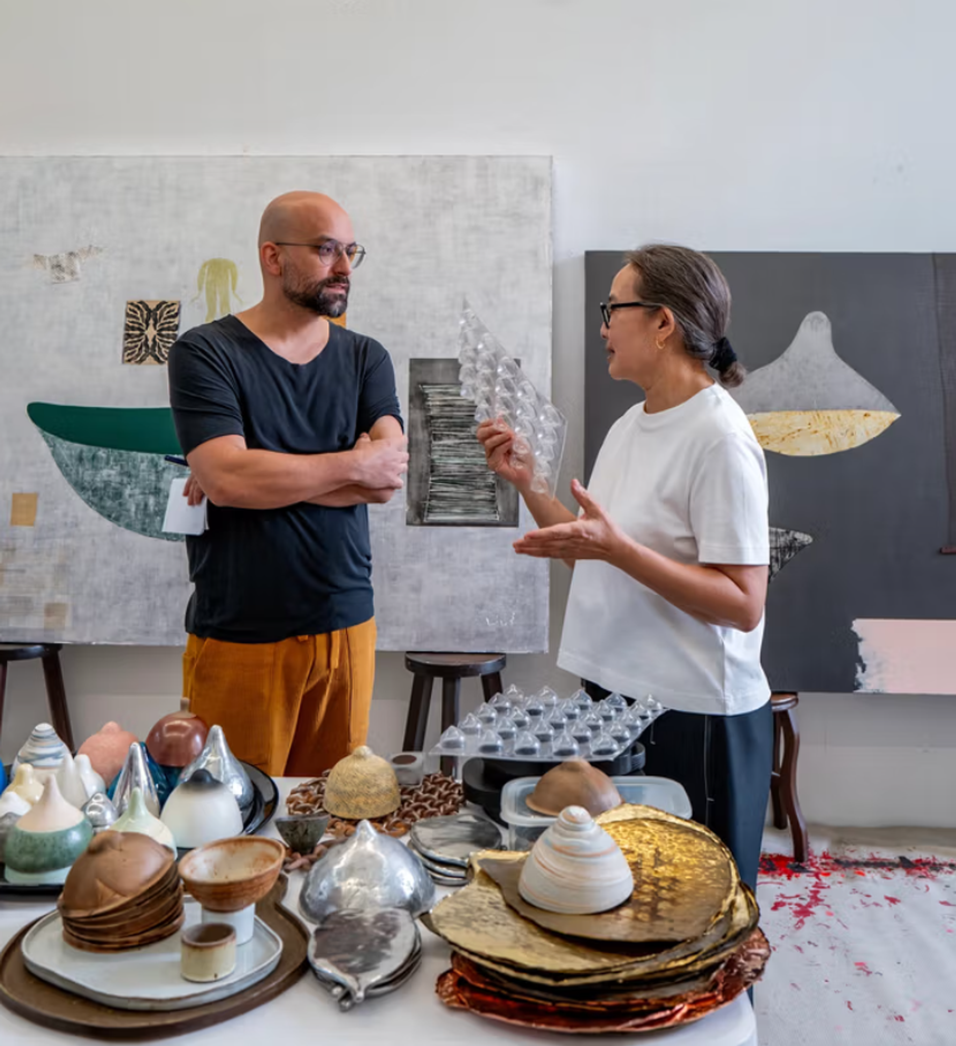Of Milk and Water, sanatçı Pinaree Sanpitak ve şef Ivan Brehm işbirliğiyle düzenlendi. Kadın formunu araştıran Sanpitak, göğüs ve ruhani bir saygı simgesi olan Budist stupasını birleştiren “göğüs stupası” motifiyle tanınıyor. Sanpitak, 2005'ten bu yana devam eden Breast Stupa Cookery projesi aracılığıyla bu formu, yemek ve yenilebilir sanat alanına taşıdı. Ziyaretçileri farklı bağlamlarda bir araya getiren benzersiz deneyimler yaratmak için şeflerle işbirliği yaptı.