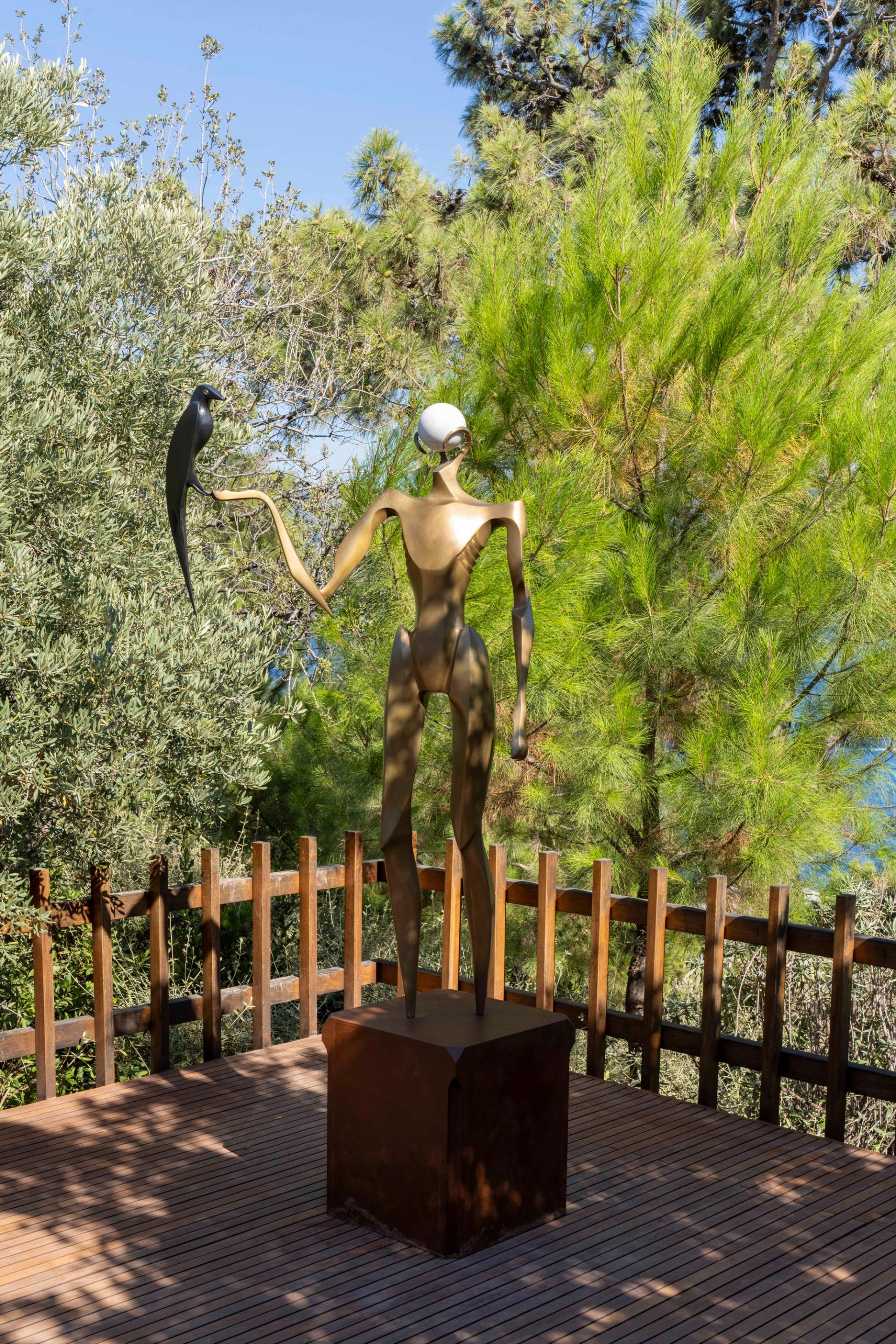 César Baldaccini, ikonik “Pouce” heykeliyle gündelik bir hareketi hem kişisel hem etkileyici bir forma dönüştürüyor. Agustín Cárdenas, organik formlarında zamanın kıyısında duran, sezgisel ve masalsı bir varoluşu işaret ediyor. Alejandro Cardenas, insanı andıran figürleriyle insanın ötesinde bir varoluş hali kurguluyor. Tia-Thuy Nguyen, ölü meşe ağaçlarını kumaşla kaplayarak yaşam ile ölüm arasında köprü kurarken, Ryan Schneider da güçlü figürleriyle hem içsel bir sorgulamanın hem de kültürel ritüellerin izini sürüyor. Almine Rech, “Her sanatçı varlığını farklı şekilde ifade ediyor. Bazıları fiziksel jestler ve izler yoluyla, bazıları ise hafıza ya da kimlik izlerini keşfederek, bu açık hava mekânıyla diyalog kuran bir anlatı oluşturuyor,” diyor.