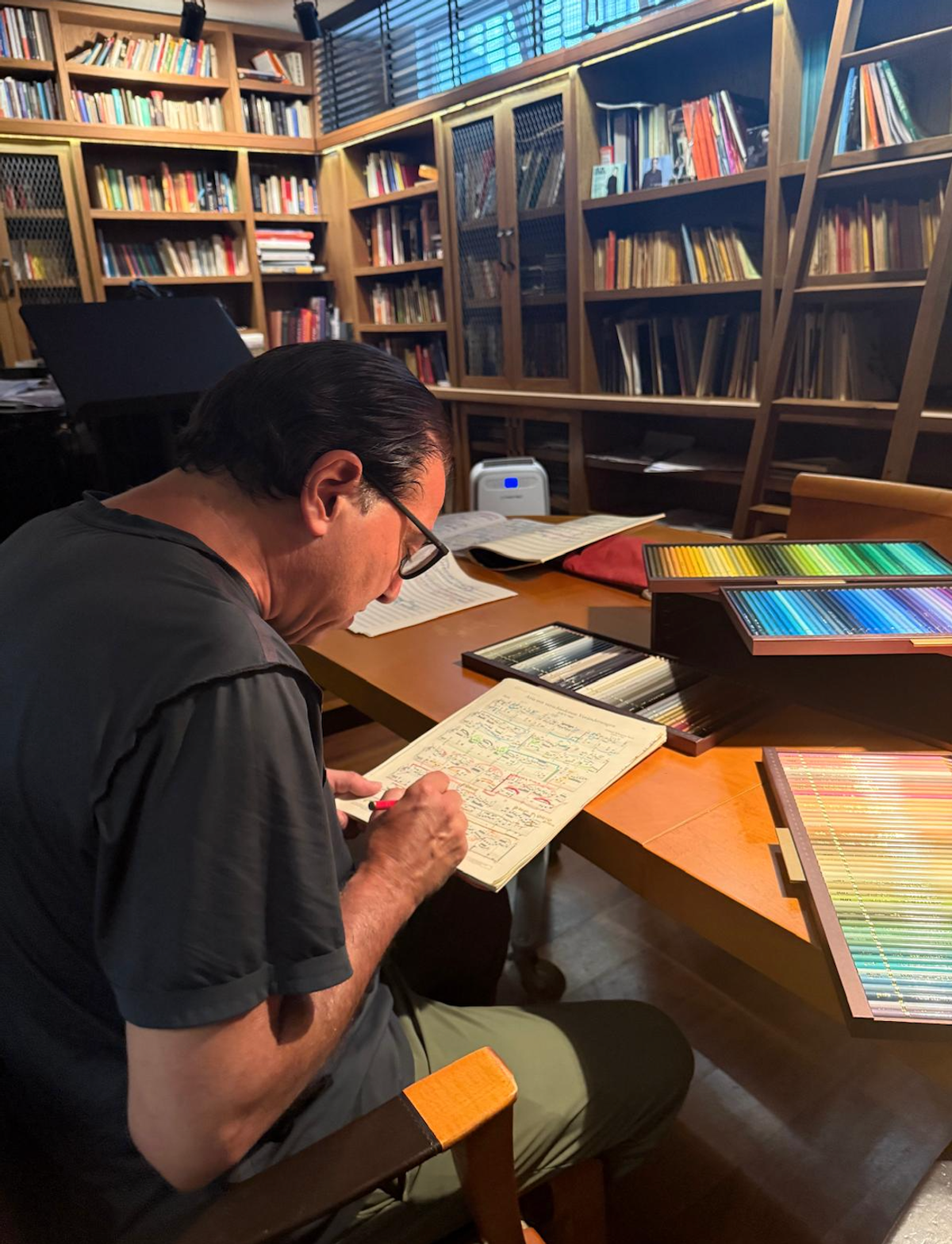 Biz müzisyenler notalarda özellikle dikkat etmemiz gereken bölümlere zaten kırmızı kalemle işaret koyarız. Ya da takip etmemiz gereken bir ezginin üstünden renkli kalemlerle geçeriz, bağını çekeriz. Yani zaten çoğu müzisyen renklerle çalışır. Bu çalışmayı ben çok da sevdiğim için renkli görüntüyü çalıştığım tüm eserlerde kullandım. Boyamayı seviyorum; Mozart, Bach, Debussy gibi, her ne çalışıyorsam.