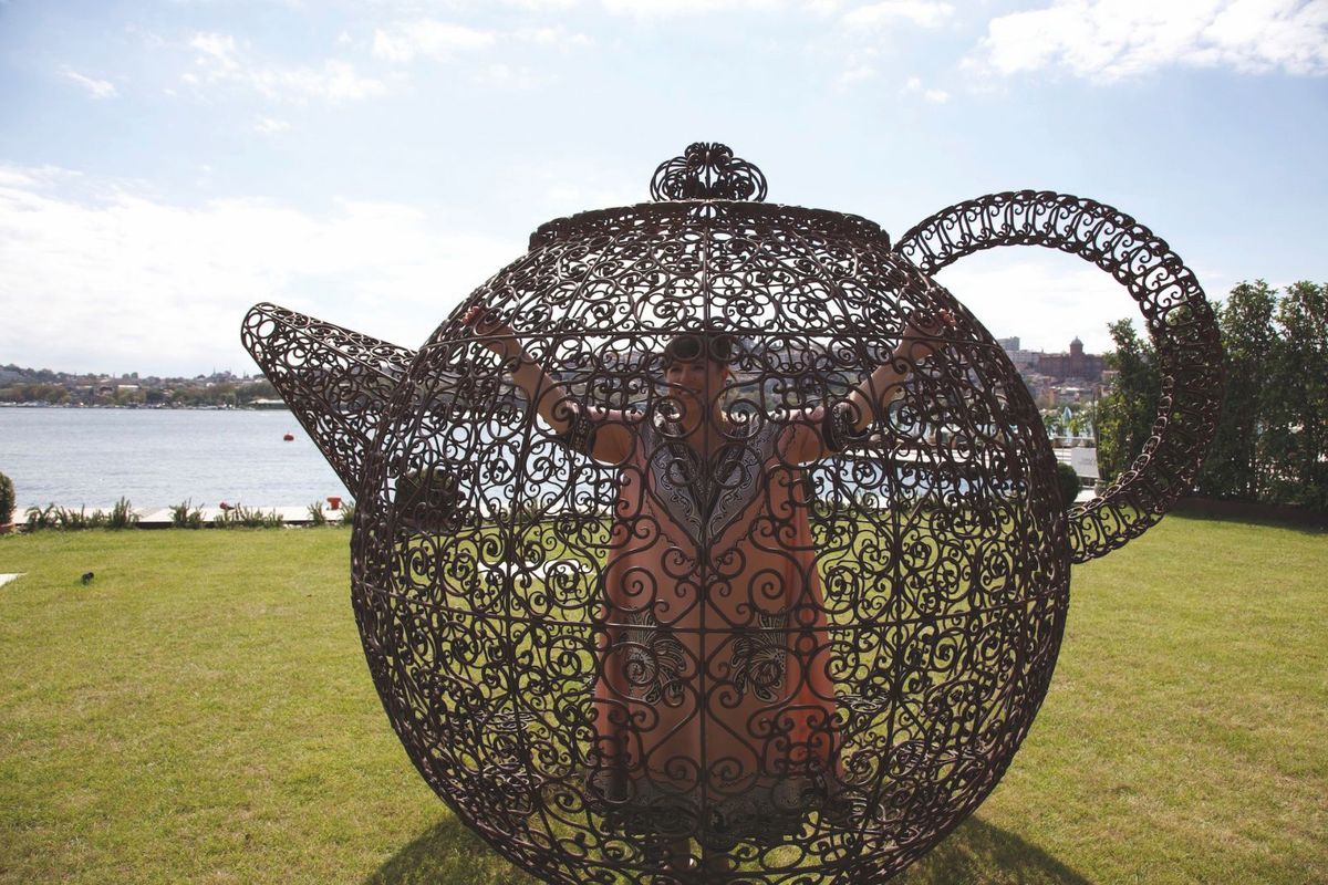 Te Danzante, yani çaydanlık, benim yaptığım bir eser. Bu yapıtların bazıları dünyanın farklı yerlerindeki büyük koleksiyonlarda ve müzelerde yer alıyor. Bunu Portekiz geleneğiyle ilişkilendirmek her zaman ilginç oluyor; çünkü 1600’lerde bir Portekiz kraliçesi bir İngiliz kralıyla evlenmiş ve Hindistan’dan Lizbon’a gelen çayı İngiliz sarayına taşımış. Böylece çay Avrupa’da bir gelenek haline gelmiş ve İngiliz sarayındaki beş çayı uygulaması da bu sayede başlamış. Çayın bu kadar önemli olduğu her yer ilgimi çekiyor; örneğin Çin’de, Kore’de ve Japonya’da çay seremonileri büyük önem taşıyor. Burada ise çay, toplumsal yaşamın ve günlük hayatın bir parçası olarak insanları bir araya getiriyor, birlikte oturmayı ve sohbet etmeyi sağlıyor. Dolayısıyla çay, tıpkı Portekiz’de olduğu gibi, sizin kültürünüzün de bir parçası. Bu yüzden bu eseri, Portekiz ve Türk kültürünü tek bir bağlamda buluşturacak şekilde seçtim ve buraya getirdim.