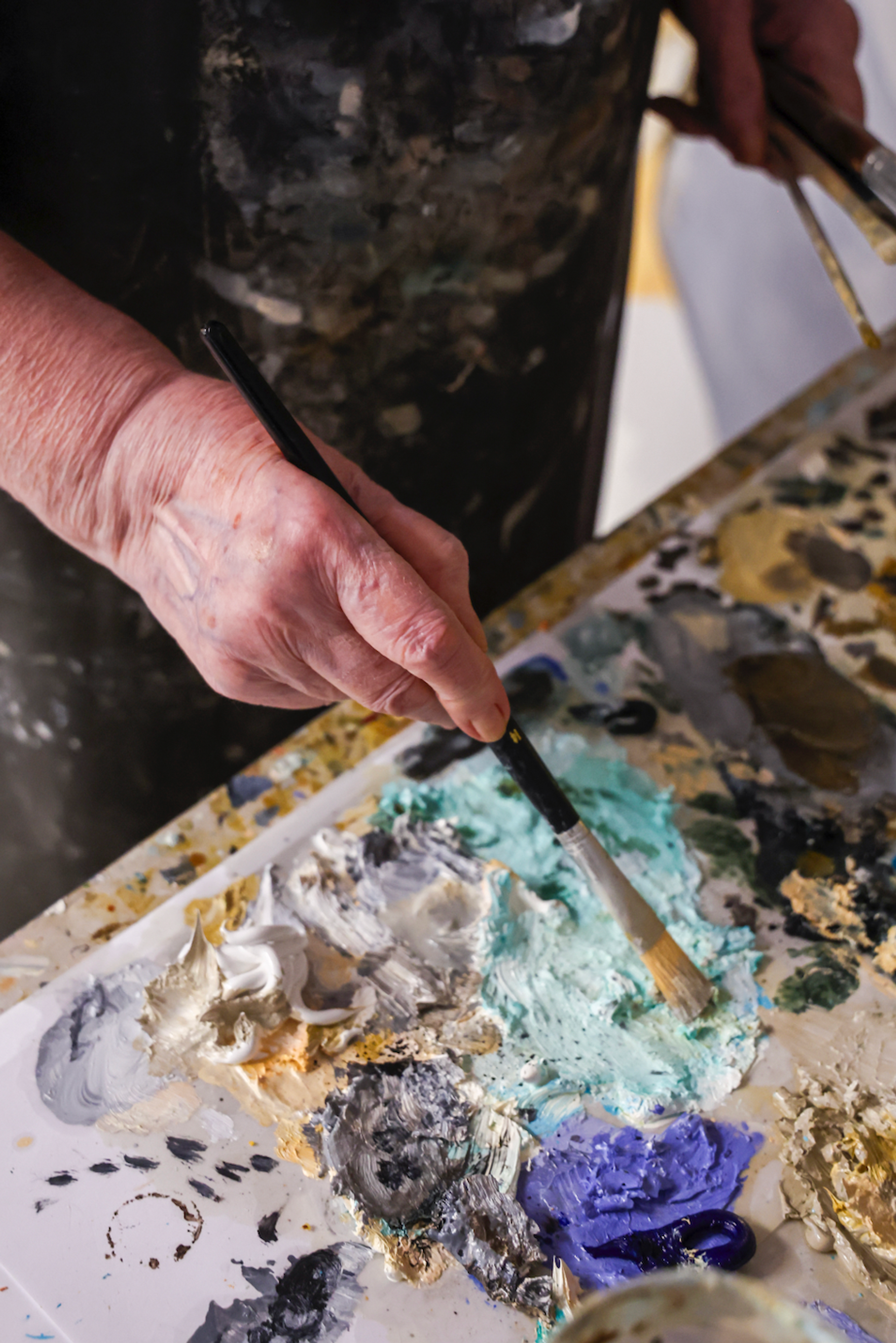 Bizi ev-atölyesinde, uzun yıllardır yanında bulunan temsilcisi Kerem Malikler’le birlikte karşılayan Erdok’un atölyesini görmek bile başlı başına bir deneyimdi. Her köşesi geçmişin izlerini taşırken, şövalesi de fırça darbelerinin bıraktığı taze izlerle doluydu. Uzun uzun sohbet ettik. Erdok’un sevecenliği, olağanüstü hafızası ve güçlü betimlemeleri, anlattığı her anıyı sanki bir resmin içine taşır gibi gözümüzde canlandırıyordu. Onu dinlerken zaman zaman kendimi bir tablonun içinde buldum.