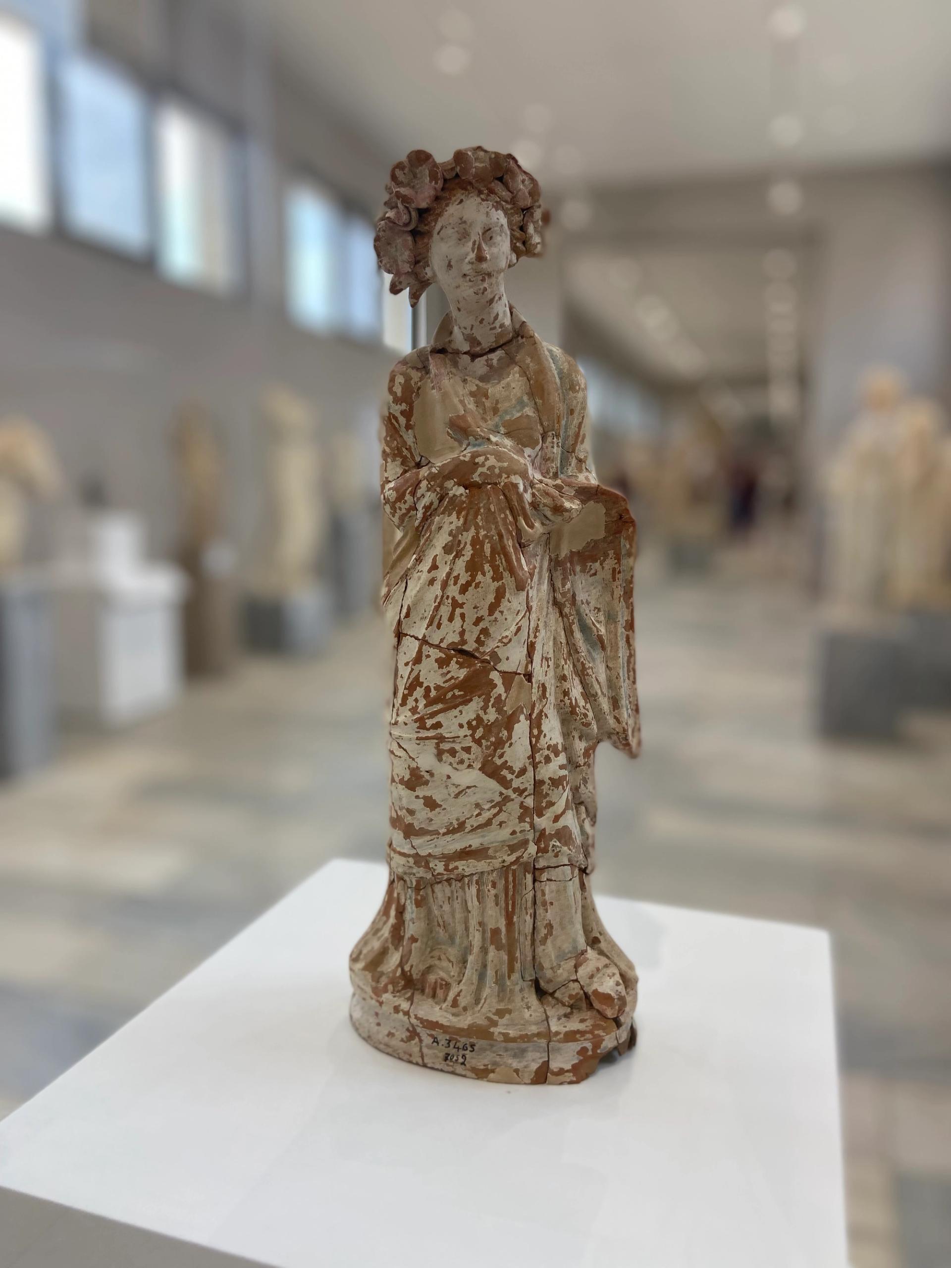 Delos Arkeoloji Müzesi'nde yer alan pişmiş topraktan figürinlerin renkli olanları oldukça nadir bulunan arkeolojik zenginliklerden.