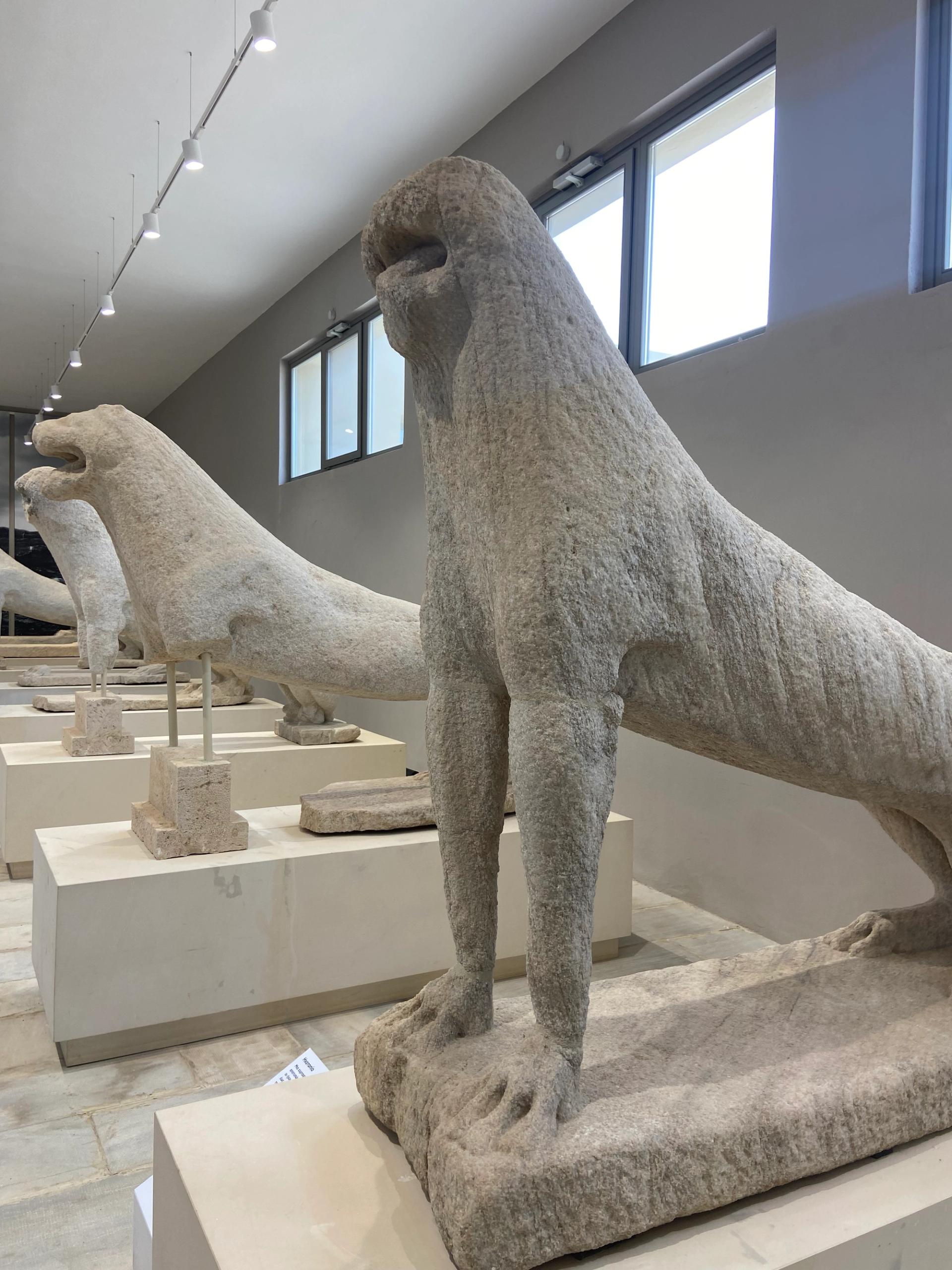 MÖ 1400-1200 yıllarına ait, yaban domuzu dişlerinden yapılmış miğfer, savunma kalkanı ve mızrağı olan bir Miken askerini tasvir eden fildişi plaket çok özel bir eser. Bu plaket, diğer altın, fildişi ve bronz eşyalarla birlikte Artemision'da bulunmuş. Aslanlı Yol’un orijinal eserleri de burada. Atina prensesi Oreitheia'nın kaçırılmasını tasvir eden MÖ 5. yüzyıldan kalma bir Boreas mermer heykeli ve Delos adasında yaşamış Dioskourides ve eşi Kleopatra'nın mermer heykelleri mutlaka görülmeli. Bu heykeller ailenin evlerinden çıkartılmış; MÖ 138’e tarihleniyor. Heykeller arasında MÖ 6. yüzyıldan kalma bir Kouros heykelinin gövdesi ve MÖ 7. yüzyıldan kalma Apollon Tapınağı'nda bulunan başka bir Kouros heykelinin üzerine yazıtlı üçgen kaidesi var. Bir tarafına kazınmış yazıtta “Beni yapan ve adayan Naksoslu Euthycartides” diyor.