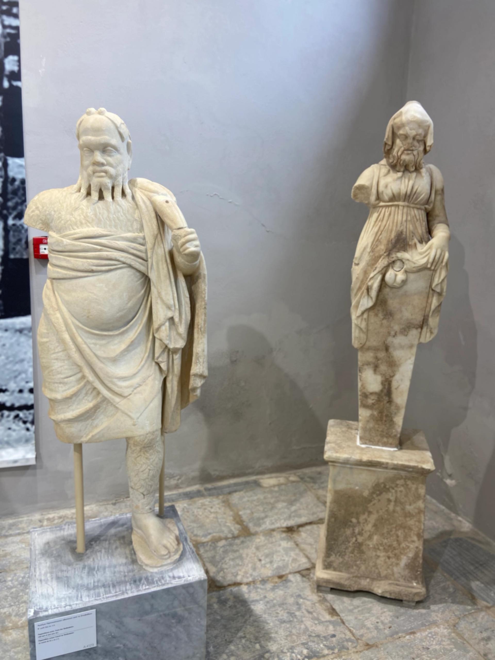 Heykel portreler galerisinde yer alan mermer portreler farklı dönemlerin önemli isimlerini gösteriyor. Dionysos geleneği olarak bereketi sembolize eden falluslar için oldukça geniş bir alan hazırlanmış. MÖ 3. yüzyılda evlerin duvarlarını süsleyen renkli çizimlerin yer aldığı bölüm o günleri zihninizde canlandırmaya yardımcı oluyor. Boyalarını koruyarak, milattan önce heykellerin ve figürünlerin aslında rengarenk olduğunu kanıtlayan eserler çok özel parçalar.