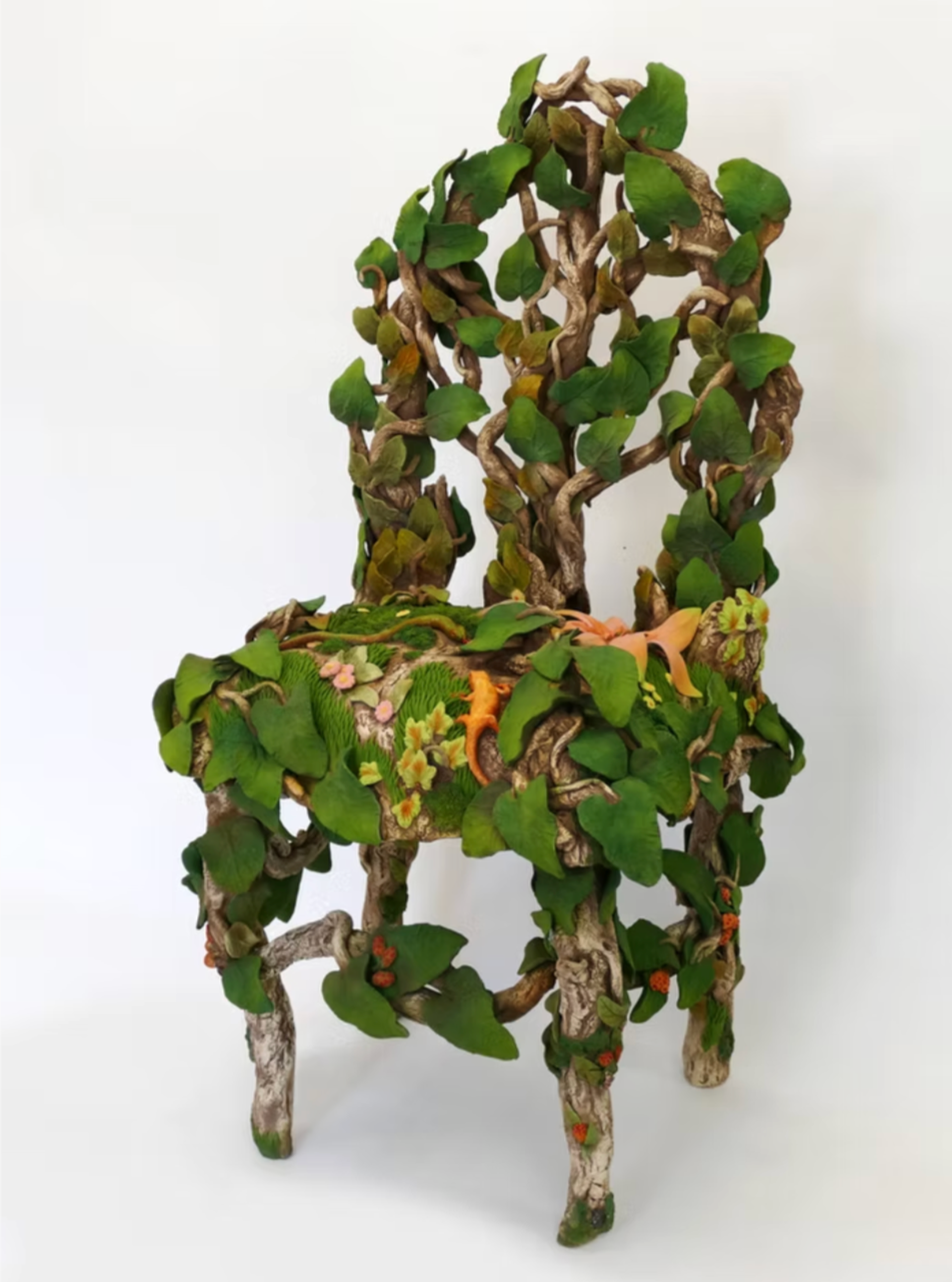 Muriel Persil, Chaise a la salamandre, jaune, 2024.