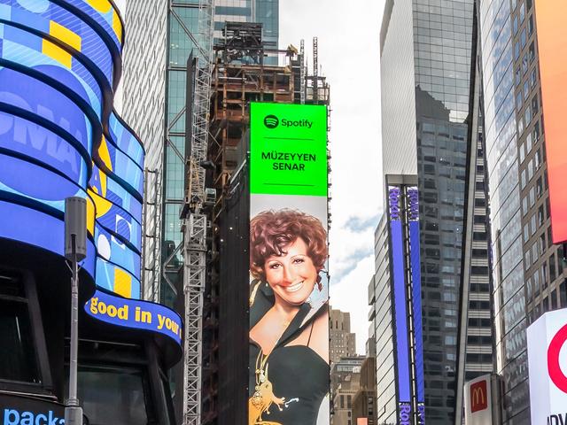 Müzik platformu Spotify, müzikte cinsiyet eşitliğini teşvik etmek için tasarladığı girişimi EQUAL’ın Türkiye Ekim ayı elçisinin “Cumhuriyet’in Divası” olarak anılan Müzeyyen Senar olduğunu duyurmuştu. Platform Cumhuriyet’in 100’üncü yılı kutlamaları çerçevesinde Müzeyyen Senar’ı New York'ta Times Square’a taşıdı.